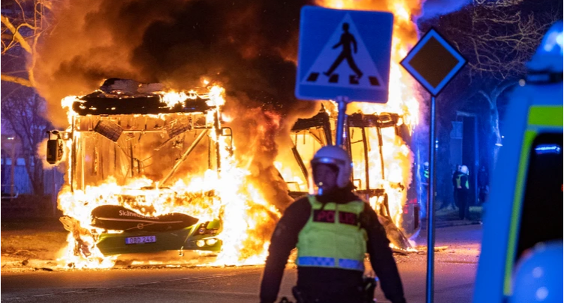Episode të dhunshme janë regjistruar në periferi të Stokholmit por dhe në zona të tjera. Në Malmo policia shpërndau një turmë manifestuesish të cilët i kishin vënë flakën një autobusi. Në qytet ishin grumbulluar ekstremistët e së djathtës së lëvizjes Stram Kurs dhe grupi anti islam “Hard Line”, i drejtuar nga ekstremisti Rasmus Paludan.