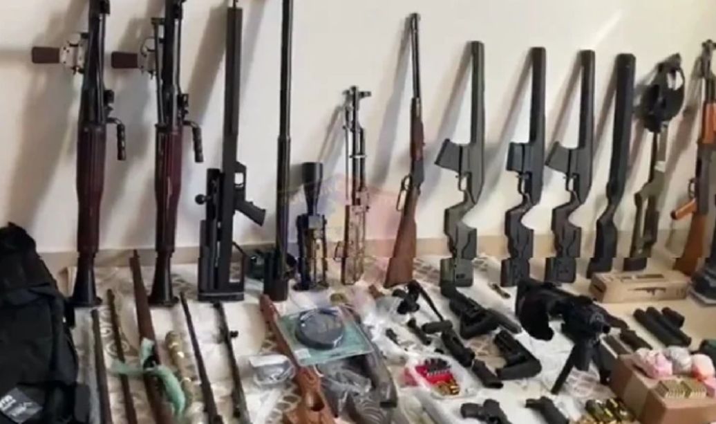 Bëhet me dije se arsenali i armëve është gjetur në garazhin e një pallati 5-katësh te Liqeni i Thatë. Burim për media bëjnë me dije se policia ka sekuestruar pistoleta dhe sniper.