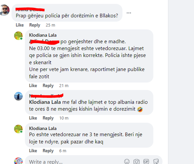Pikërisht në këtë postim, Lalën e pyet një qytetarë nëse ka gënjyer prap Policia e Shtetti në lidhje me dorëzimin e Bllakos.