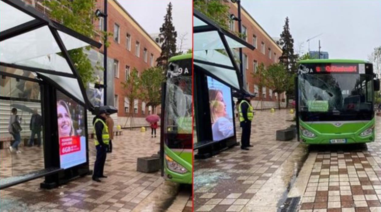 Më datë 02.05.2022, rreth orës 13:00, në bulevardin “Zogu I”, shtetasi D. Sh., duke drejtuar autobusin e linjës së Qytet Studenti, dyshohet se është përplasur me mbulesën e vendqëndrimit të stacionit të autobusit.