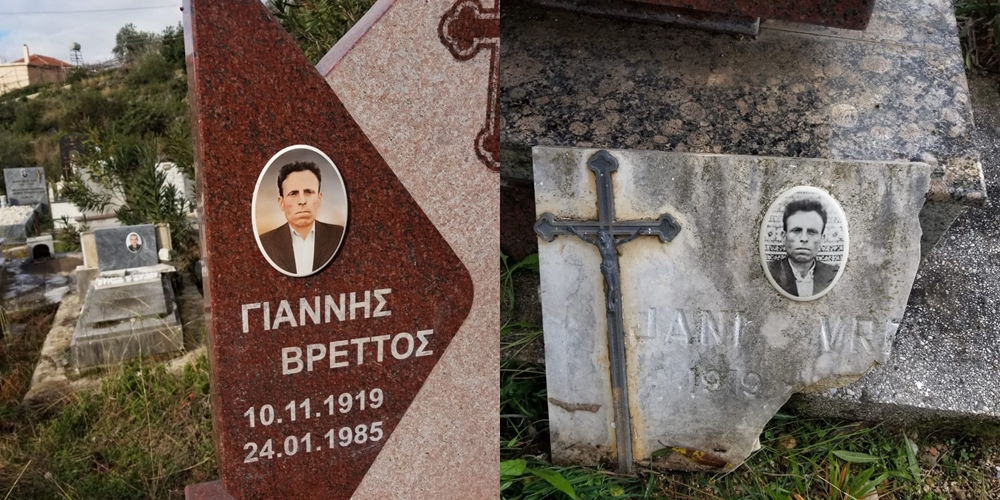 Elisa Muçaj/Këto dy pllaka varri të vendosura në varrezat e Dhërmiut në kohë të ndryshme, i përkasin të njëjtit qytetari të ndjerë. Kur u largua nga kjo botë, familjarët e tij e përcollën me nderime dhe e qanë me ligje në gjuhën e të parëve dhe të bashkëkohësve. Nuk ka shumë kohë që u largua nga jeta. E dëshmon vetë mbishkrimi në memorialin e tij. Iku nga kjo botë si Jani Vreto dhe pak kohë pasi iu ndërrua pllaka falë përkujdesit familjar, u bë edhe kalimi nga shqipja në pllakën e vjetër tek greqishtja në pllakën e re.