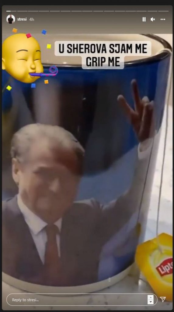 Së fundmi, reperi është sëmurë me grip dhe duket se “zgjidhjen” e ka gjetur te lideri historik i së djathtës shqiptare. Stresi ka postuar në Instastory një foto, ku tregon se është duke konsumuar çaj me një filxhan tepër të veçantë, imazh i të cilit është Berisha me dy gishta ngritur.