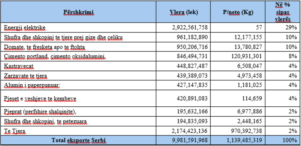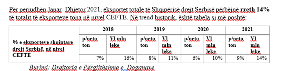Për dërgimin e produkteve të eksportit drejt Serbisë, shoqëritë nga Shqipëri nuk kalojnë nga Kosova, por nga Maqedonia e Veriut ose nga Mali i Zi.