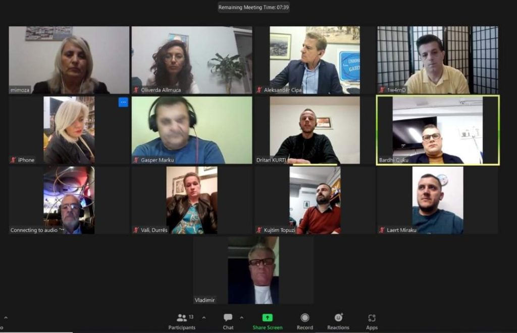 Unioni i Gazetarëve Shqiptarë zhvilloi ditën e mërkurë, më datën 8 mars 2023 një takim në zyrën qendrore dhe nëversionin online, përmes platformës Zoom, me drejtuesit në Tiranë dhe në qarqe të vendit, si dhe me drejtues të degëve në USA dhe Bruksel.