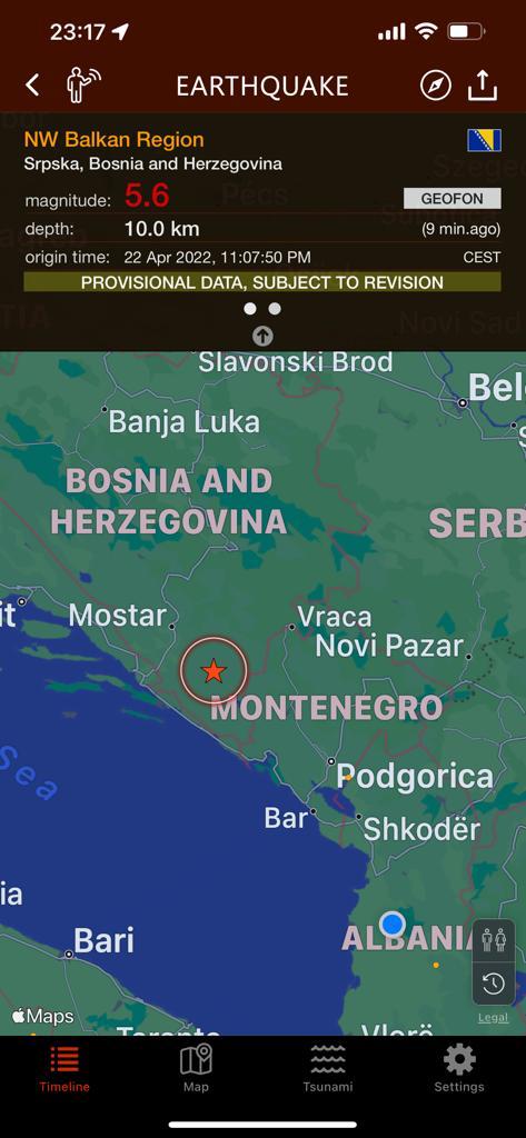 Një tërmet i fuqishëm me magnitudë 6 balla ka goditur mbrëmjen e kësaj të premteje Ballkanin. Epiqendra ka qenë në Sarajeve, ndërsa lëkundjet janë ndjerë në disa shtete, përfshirë edhe Shqipërinë.