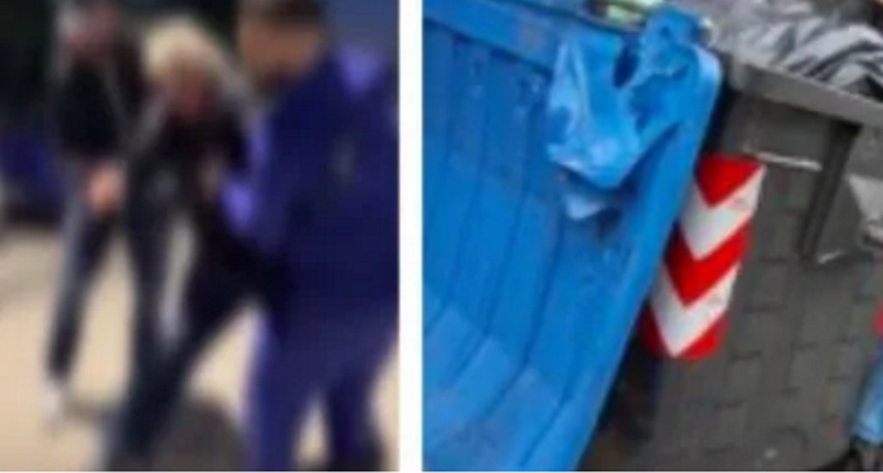 Imazhet e shpërndara në Instagram dhe rrjetet sociale tregojnë se si burri u kap dhe u bllokua në mes të rrugës nga grupi i të rinjve dhe më pas u hodh në koshin e mbeturinave.