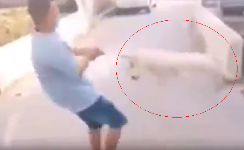 Së fundmi në rrjetet sociale po qarkullon një video, ku tregon një të ri, i cili ka lidhur qenin me tel nga qafa dhe e rrotullon në ajër.